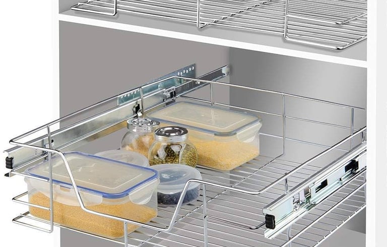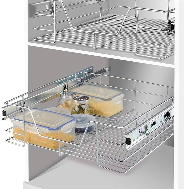 Smooth sliding baskets for kitchen or wardrobe organization.